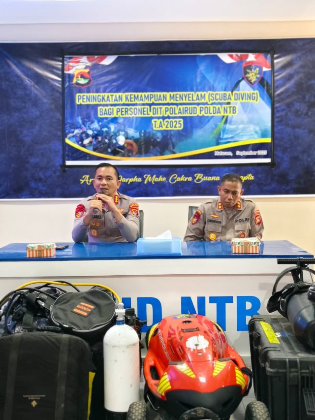 Direktorat Kepolisian Perairan dan Udara (Dit Polairud) Polda NTB menggelar pelatihan peningkatan kemampuan selam bagi anggotanya. Kegiatan ini resmi dibuka oleh Direktur Polairud Polda NTB, Kombes Pol Boy F. S. Samola, S.I.K., M.H., di Mataram, Senin (15/9/2025).